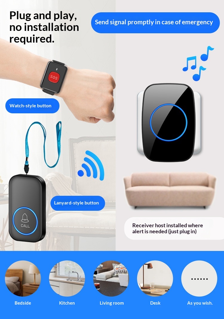 Personal Wearable Button For Elderly Call Devices For Home Use